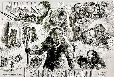 This artwork would be considered to be fan art, since the drawing depicts Lyanna Mormont, a character from Game of Thrones. (2011-2019 TV series)