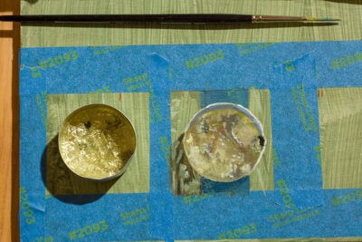 To maintain the magnitude of space around the boat at such a small scale I had to carefully go in with a tiny lettering brush to add the sailboat and ripples in the water.