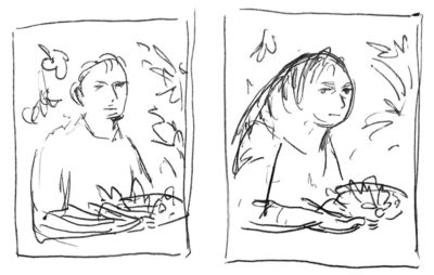 - Cat’s process for picking the reference photos that will be used in the digital illustration.