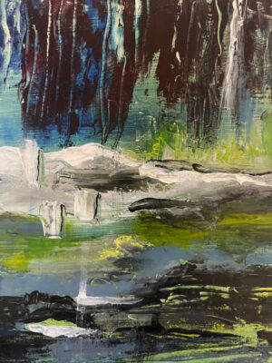 Even though I found this style very freeing and fun, I haven’t worked like this again. First one is inspired by the Northern Lights, Second, Reflection in lily pond, third, just let the color and line work inspire me.”