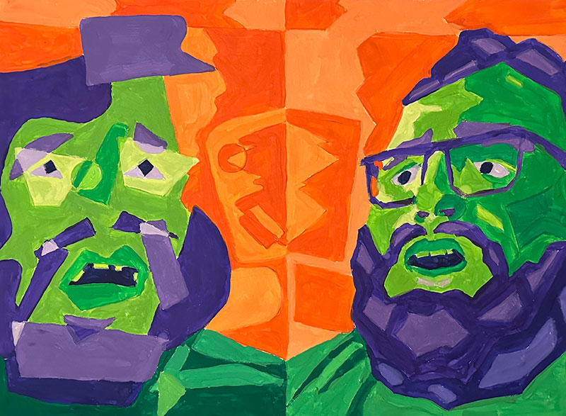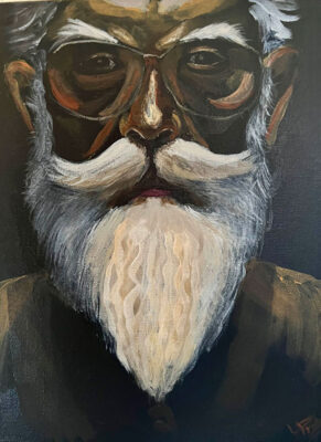 The facial hair frames in the expression and helped guide my positioning through the process of making this piece. Making the cubist interpretation was like a fun puzzle to figure out.”