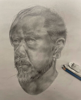 “Initially started to draw and shade with graphite. However I wanted this portrait to be more expressive and decided to go for charcoal instead.