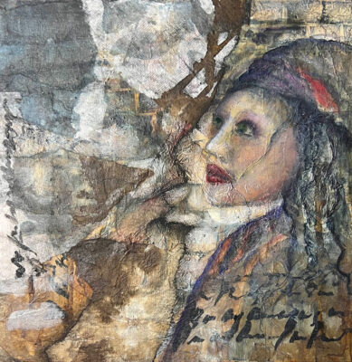 This intuitive mixed media piece is based off of real life experience coping with emotions surrounding the difficulties facing my mother who has dementia. I haven’t seen her in 8 years and it is difficult and I needed to process through my thoughts, feelings, and ghosts from the past.