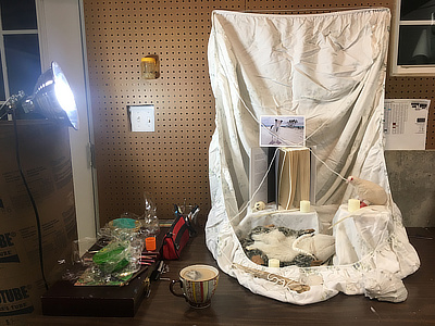 Set up your light source. You could use a clamp light or desk lamp to illuminate your objects and create dynamic shadows.