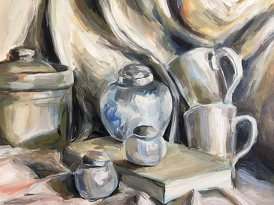 Create and paint a still life using only white objects.