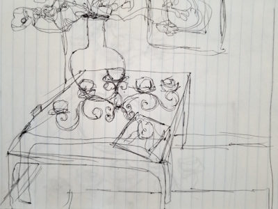 Draw an interior or exterior space as if you have X-Ray vision. See through the objects and emphasize where they overlap in the space to create depth.