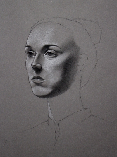 In this portrait drawing below, the face is beautifully rendered. The shadows are soft and the highlights have a lovely, almost silky surface to them.
