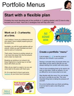 Create your own “Portfolio Menu,” a structure which is a solid foundation for starting your portfolio, and staying on track.