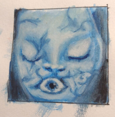 When I saw that the art dare for this month was tiny art, I knew that I wanted to explore feelings of solitude and loneliness, something I would usually achieve by making use of space around the subject.