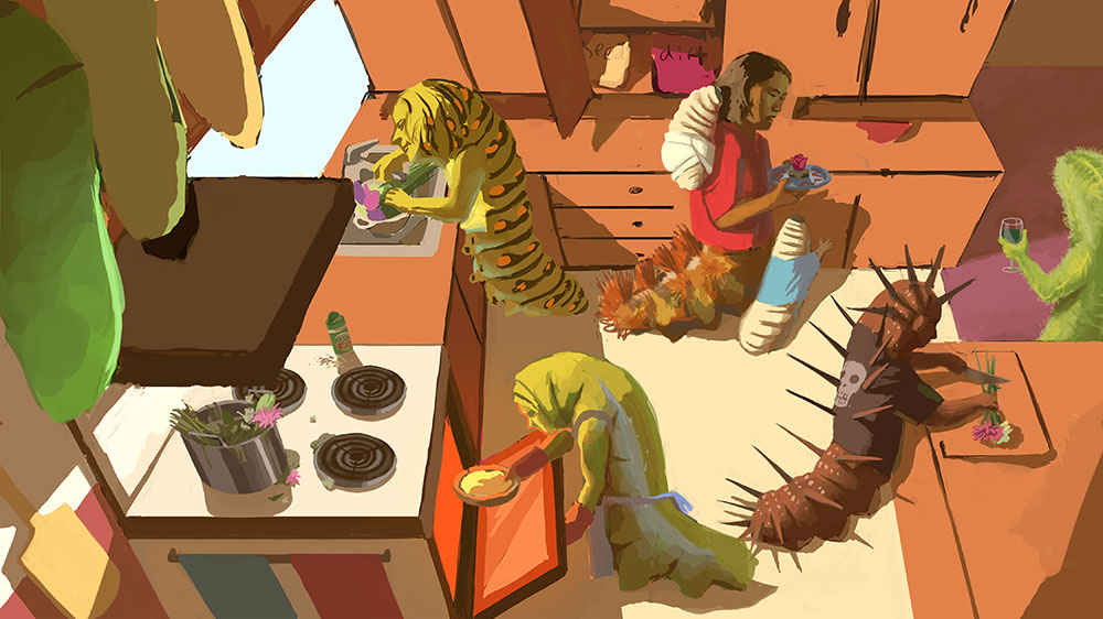 See how to create an original illustration from the initial brainstorming stages all the way to the completed digital painting in Photoshop.