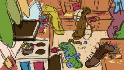 - Blocking in the composition with lines, filling in flat colors are a way to establish the foundation of the illustration.