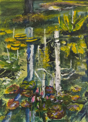 Even though I found this style very freeing and fun, I haven’t worked like this again. First one is inspired by the Northern Lights, Second, Reflection in lily pond, third, just let the color and line work inspire me.”