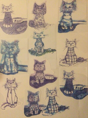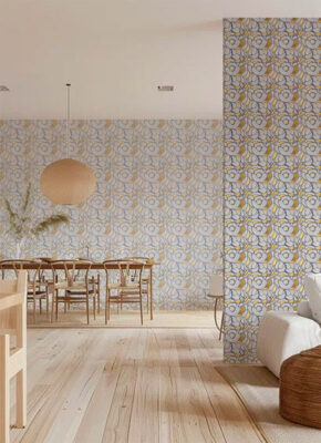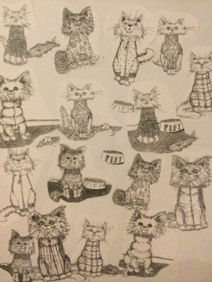 “I really enjoyed the wallpaper challenge as a chance to work with patterns. This work contains fluffy animals in warm jackets and some fish.