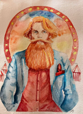 The facial hair frames in the expression and helped guide my positioning through the process of making this piece. Making the cubist interpretation was like a fun puzzle to figure out.”
