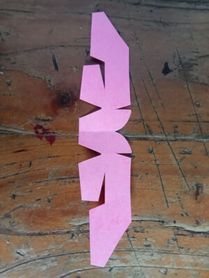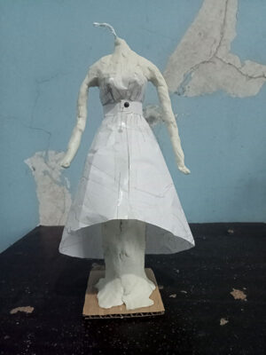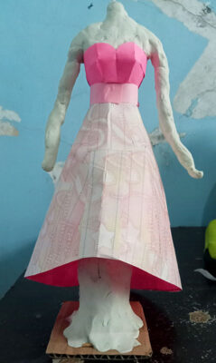 “This art dare piece was an excuse to do something different. I decided to do a post-it dress. I use a plain colored pink post-it and a printed pastel pink post-it.