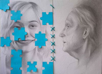 This intuitive mixed media piece is based off of real life experience coping with emotions surrounding the difficulties facing my mother who has dementia. I haven’t seen her in 8 years and it is difficult and I needed to process through my thoughts, feelings, and ghosts from the past.