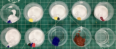 Mix your colors. With each cup of white, mix only a tiny pebble’s worth of color.