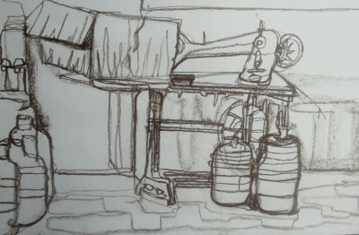 watercolor tools, acrylic tools, wet charcoal, DIY home art supplies