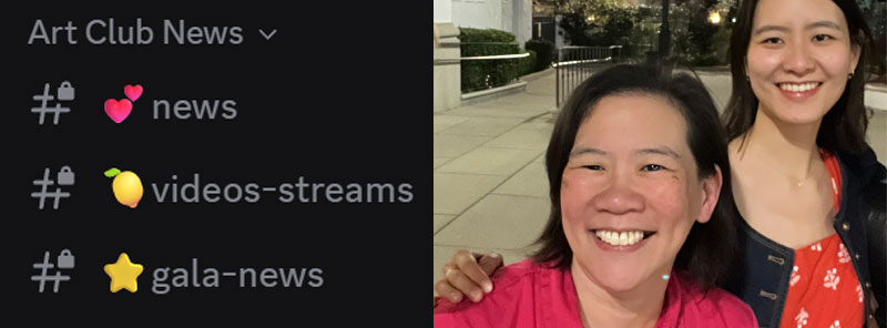 “Without Prof Lieu’s patience and diligent assistance and the extensive, thorough written instructions on Discord, I would never have been able to join Art Club. I enjoy all the instruction and feedback I’ve been getting on my art work.”
