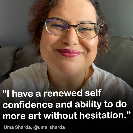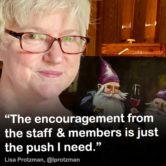 “I’m not inclined to enroll in art school for a number of reasons, but Art Prof has such robust content delivered through user-friendly platforms and skilled teaching artists who are invested in our growth, I don’t need a formal academic program.”